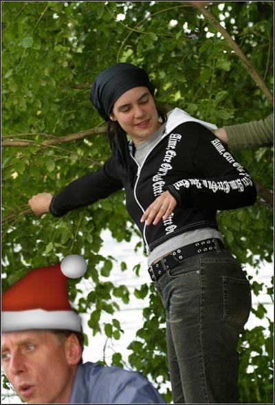 wie eine Schneekönigin, als sie im Gestrüpp am Ufer den Weihnachtsmann