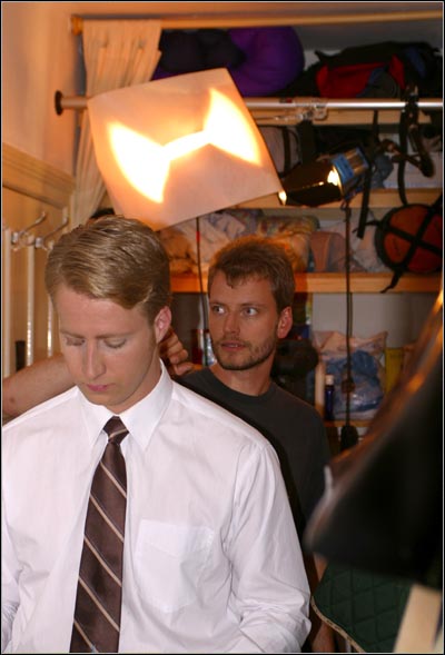 an Tim. In Gedanken bereits in die Lichtstimmung der nächsten Einstellung