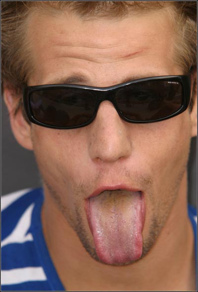 Drehtagebuch IV - Hafenklang 24.06.03 Und weil die Continuity immernoch in irgendwelchen Kofferräumen eingesperrt ist, rauht sie auch die Zunge mit auf.