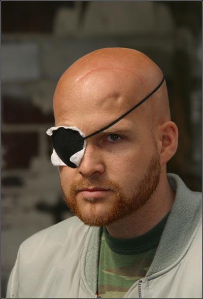 Drehtagebuch IV - Hafenklang 24.06.03 Kjeld Schönnagel, der Einäugige unter den von seinem glänzenden Schauspiel geblendeten Illuzonisten, hat extra für den Dreh mehrere schwere Gegenstände auf seinem Kopf zertrümmert.