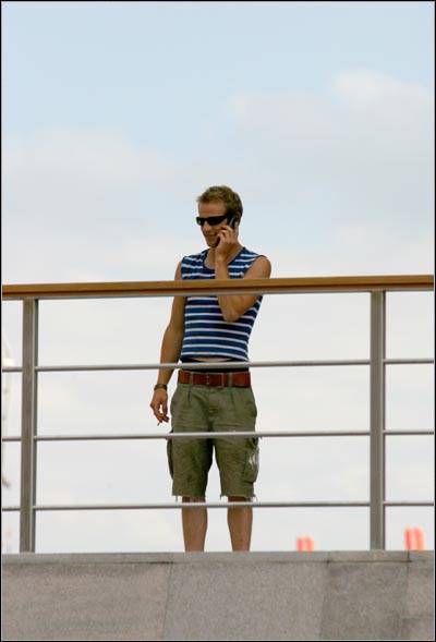 Drehtagebuch IV - Hafenklang 24.06.03 Angenehm überrascht, wie gut so eine Bimssteinbehandlung tut, konnte Sebastian dem Produktionsbüro schließlich doch verzeihen, daß er heute viel zu früh zum Set zitiert worden war.