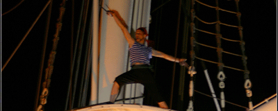 Es war mit Sicherheit der umstrittendste Regieeinfall des Projektes, ein Synphonieorchester in der Elbe zu versenken, das so groß war, daß man es nur vom Hauptmast des größten Schiffes im Hafen aus dirigieren konnte.