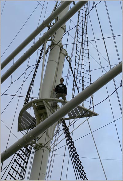 Drehtagebuch V - Rickmer Rickmers 25.06.03 Sebastian plant einen dreifachen Rittberger vom freischwebenden Trapez. Poki liegt indessen mit einem Nervenkasper über der Reeling.