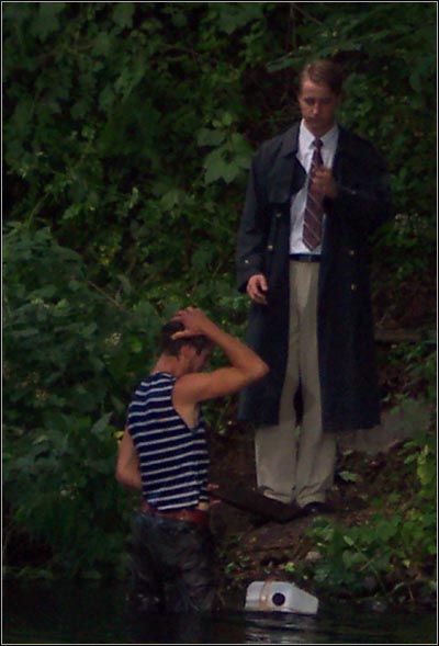 dazu auch noch in einen Plastikkanister. Sebastian kratzt sich Schlamm
