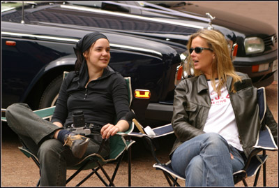 Pu und Clarissa sitzen auf zwei Stühlen, damit sie nicht wegrollen.